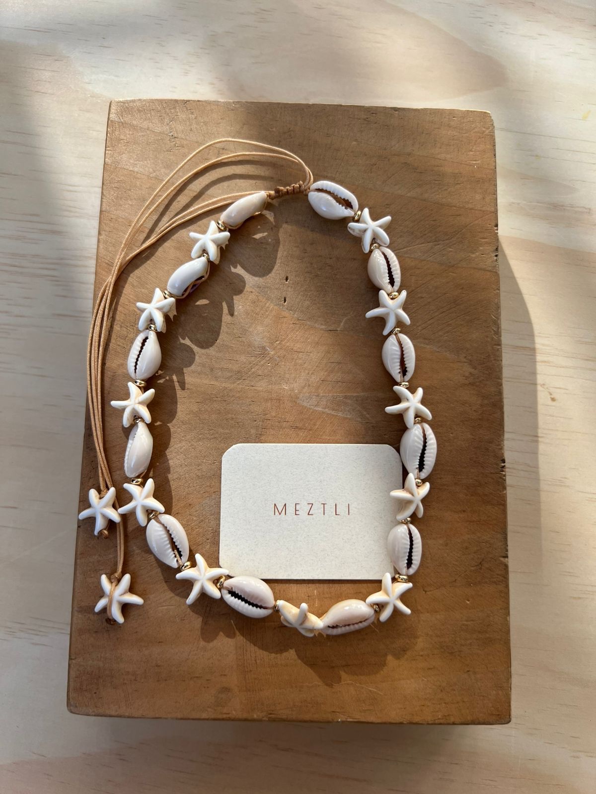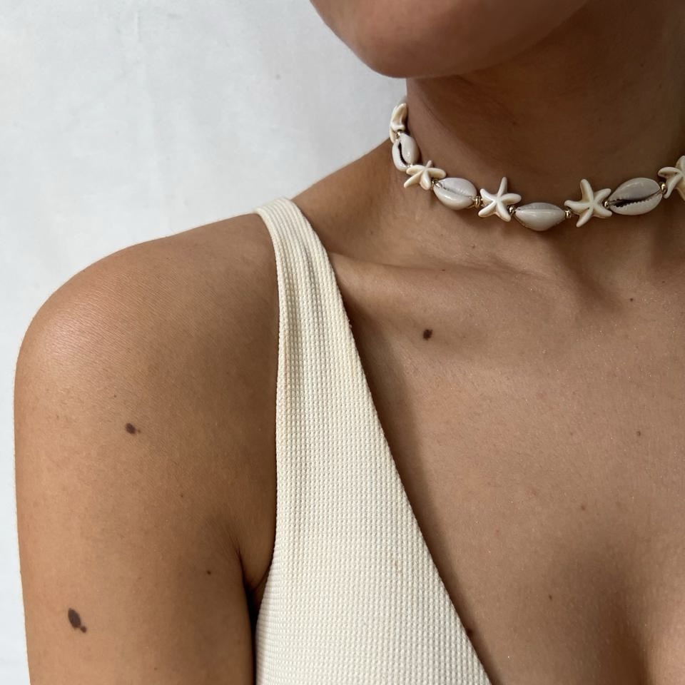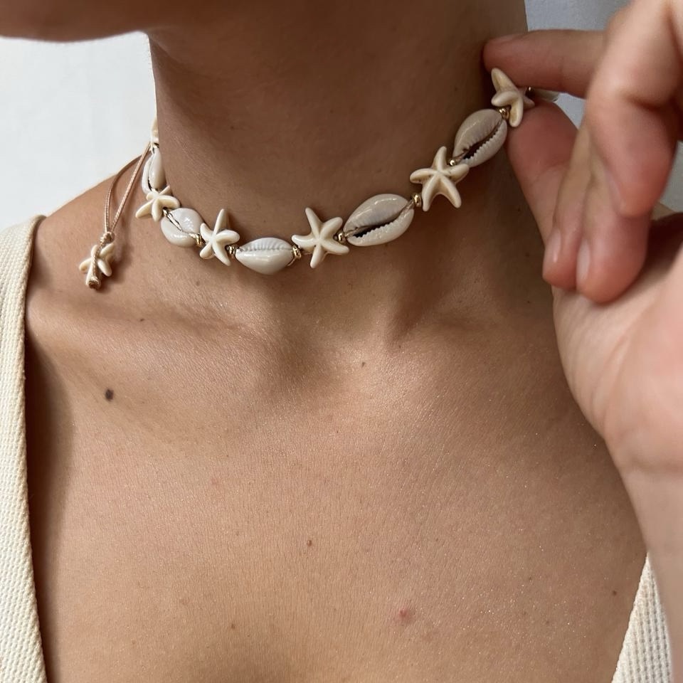 Choker tejido a mano con estrella de resina y Kaury natural. Ajustable